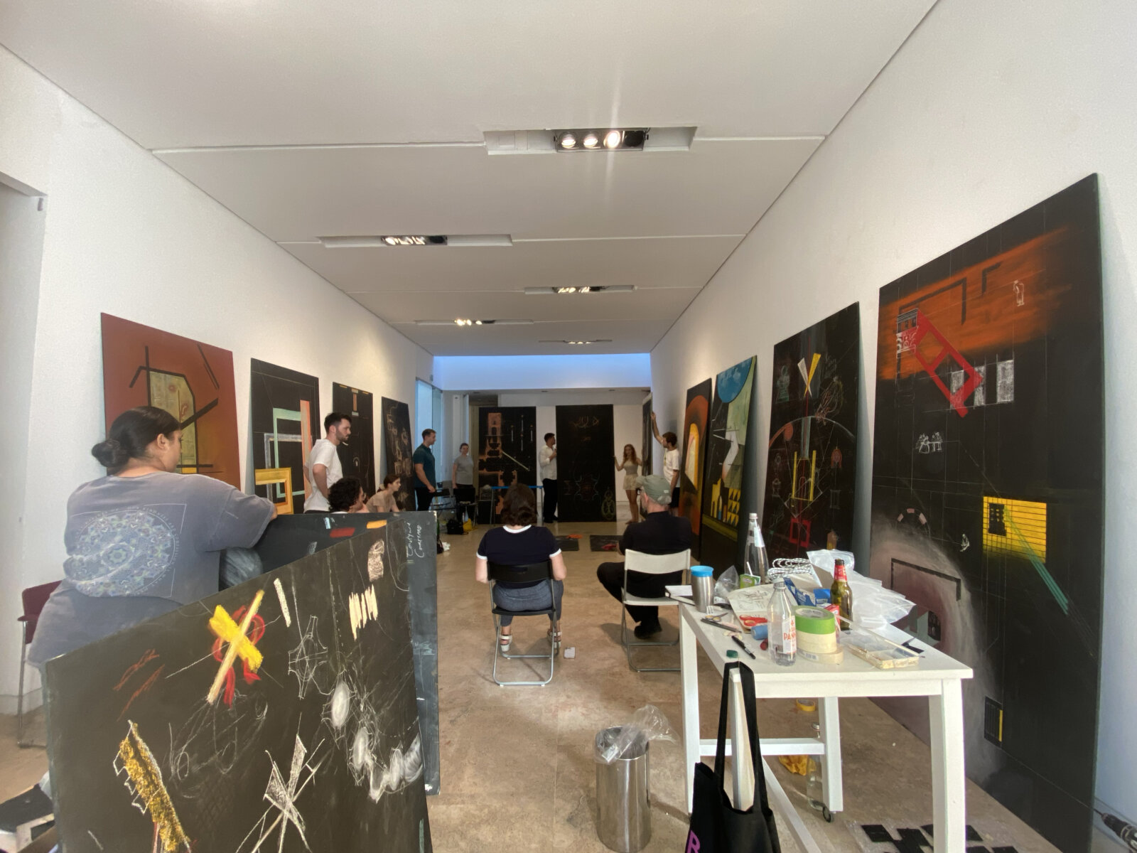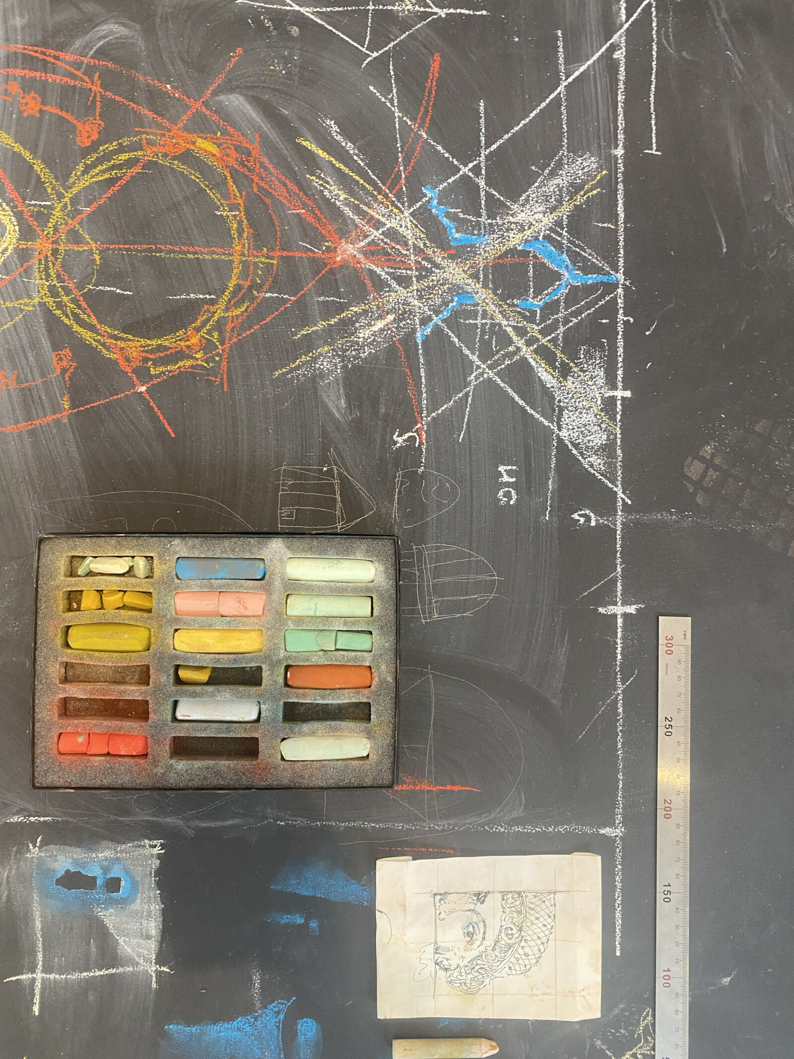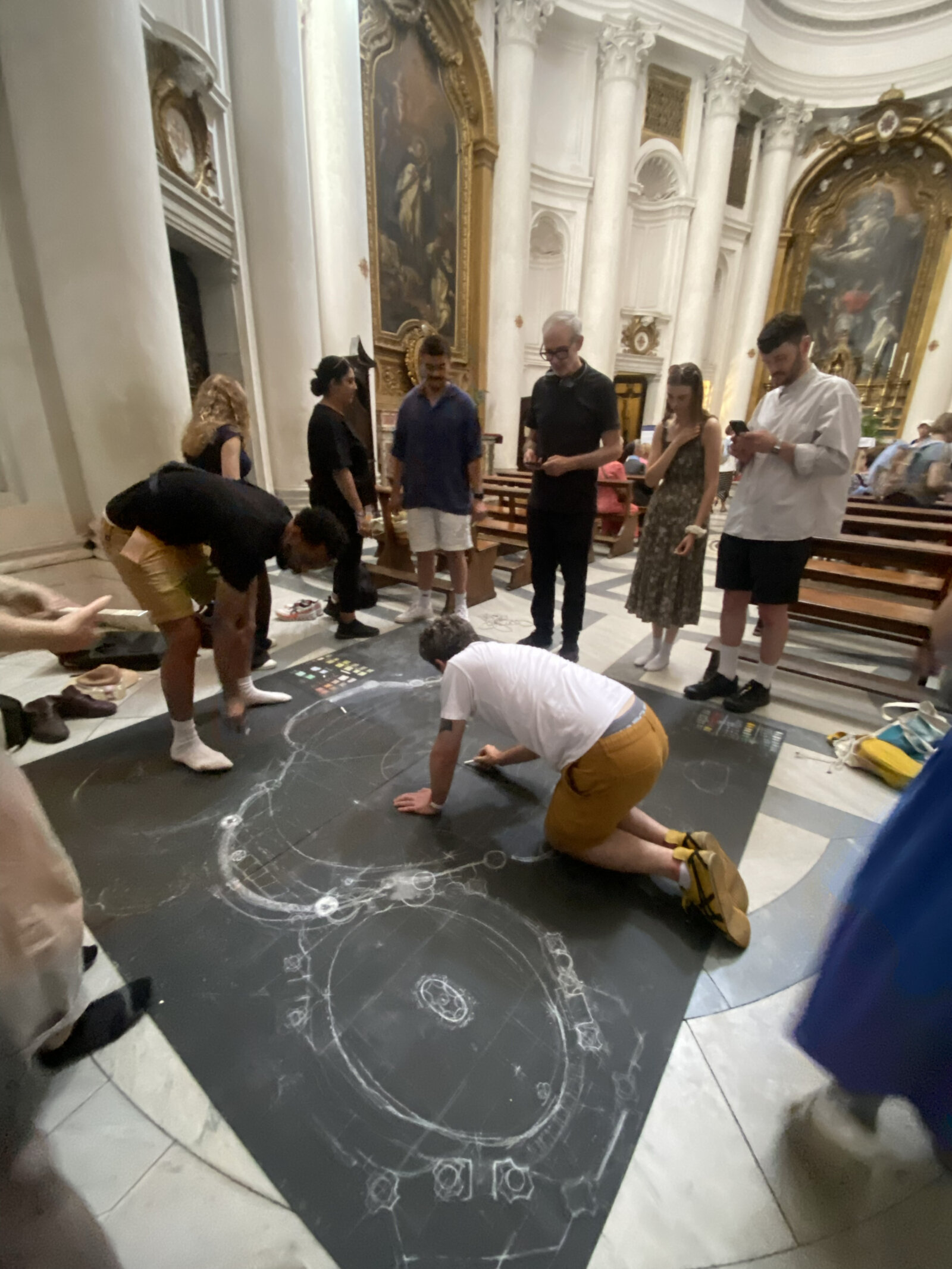 Each evening, we gathered as a group to draw on large blackboards at the BSR, swapping partners each night. Using unique clay pigment palettes inspired by ancient Roman wall paintings, we completed 12 large chalk drawings for a final exhibition and dinner, which Mike Stiff (Chairman of Stiff+Trevillion) attended.
