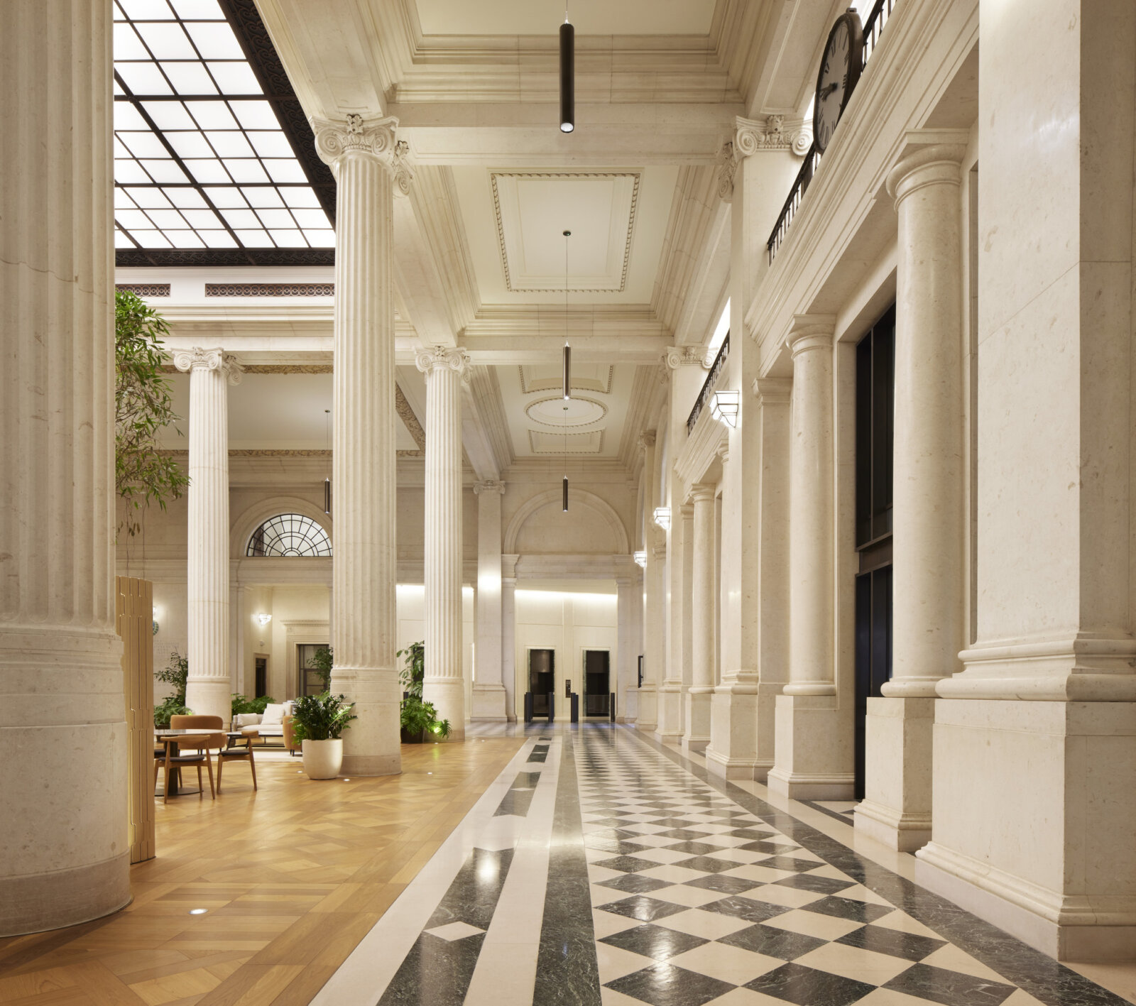 A sensitive refurbishment of a Grade II listed building with historic banking hall, adjacent to The Bank of England