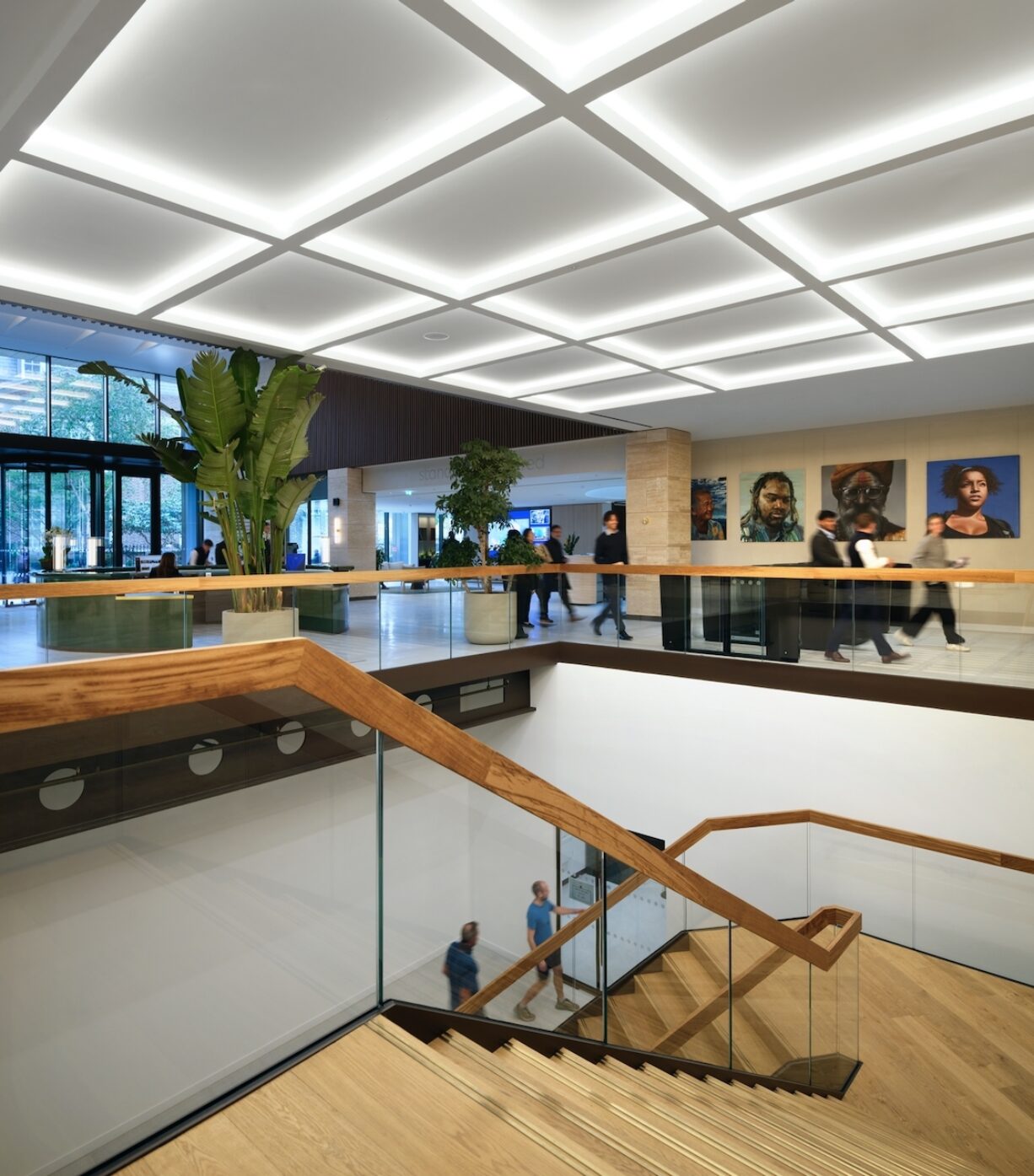 One Basinghall Avenue saw the refurbishment of the basement to 2nd Floor & roof level for Standard Chartered Bank - who remained in occupation on the 3rd-10th Floor during the work. The brief also included upgrades to core areas and importantly a move to an all-electric building with new roof terraces to encourage biodiversity.