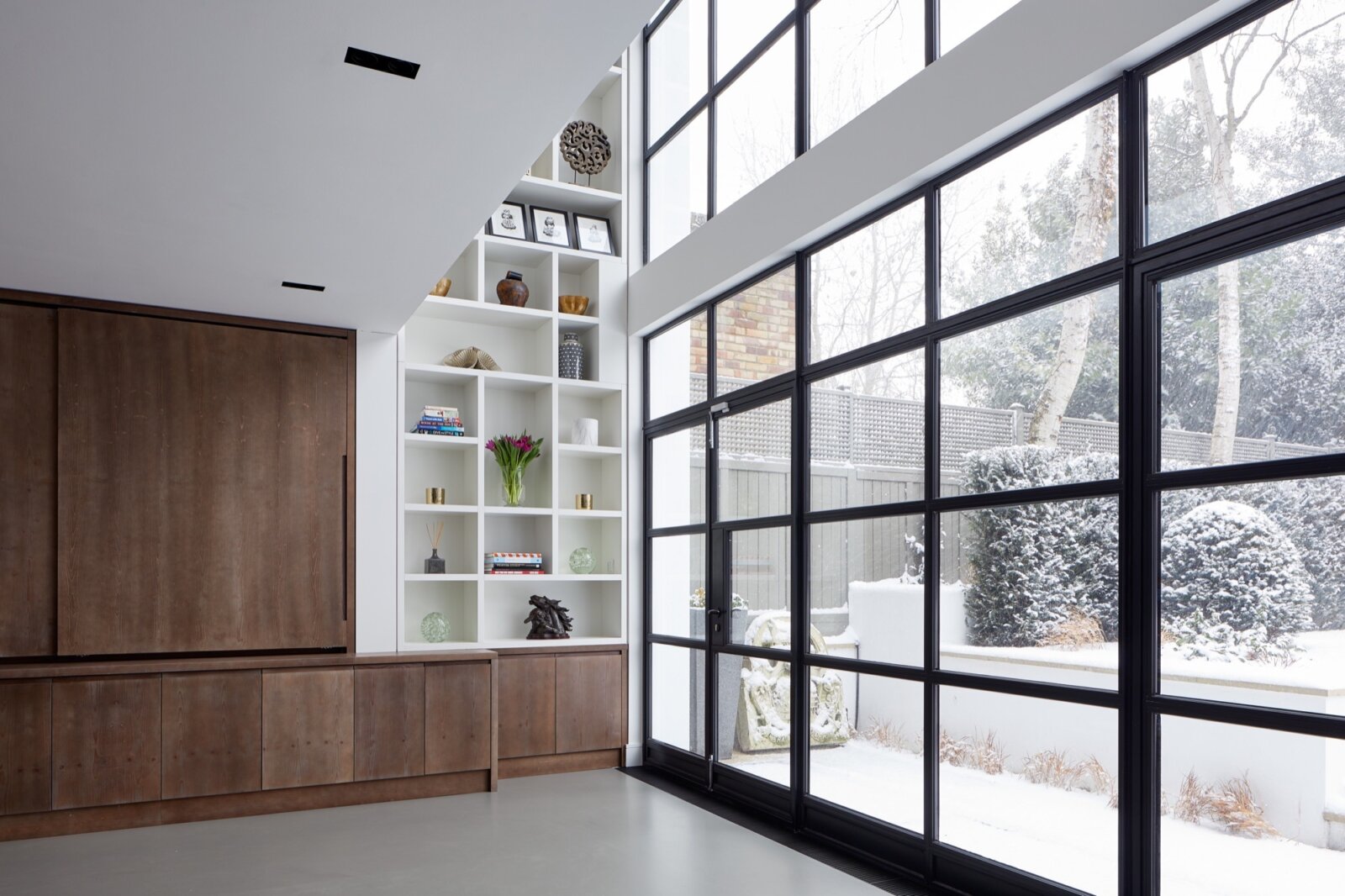 This project saw the complete refurbishment of a house built in the mid 1800’s situated in a London Conservation area. Alongside internal restructuring, a basement, two-storey side return and rear extension were added to create a large, light-filled family home. Exterior materials of stucco and London stock brick match it with its neighbours and large Crittal-style windows to the rear flood the back of the house with natural light.