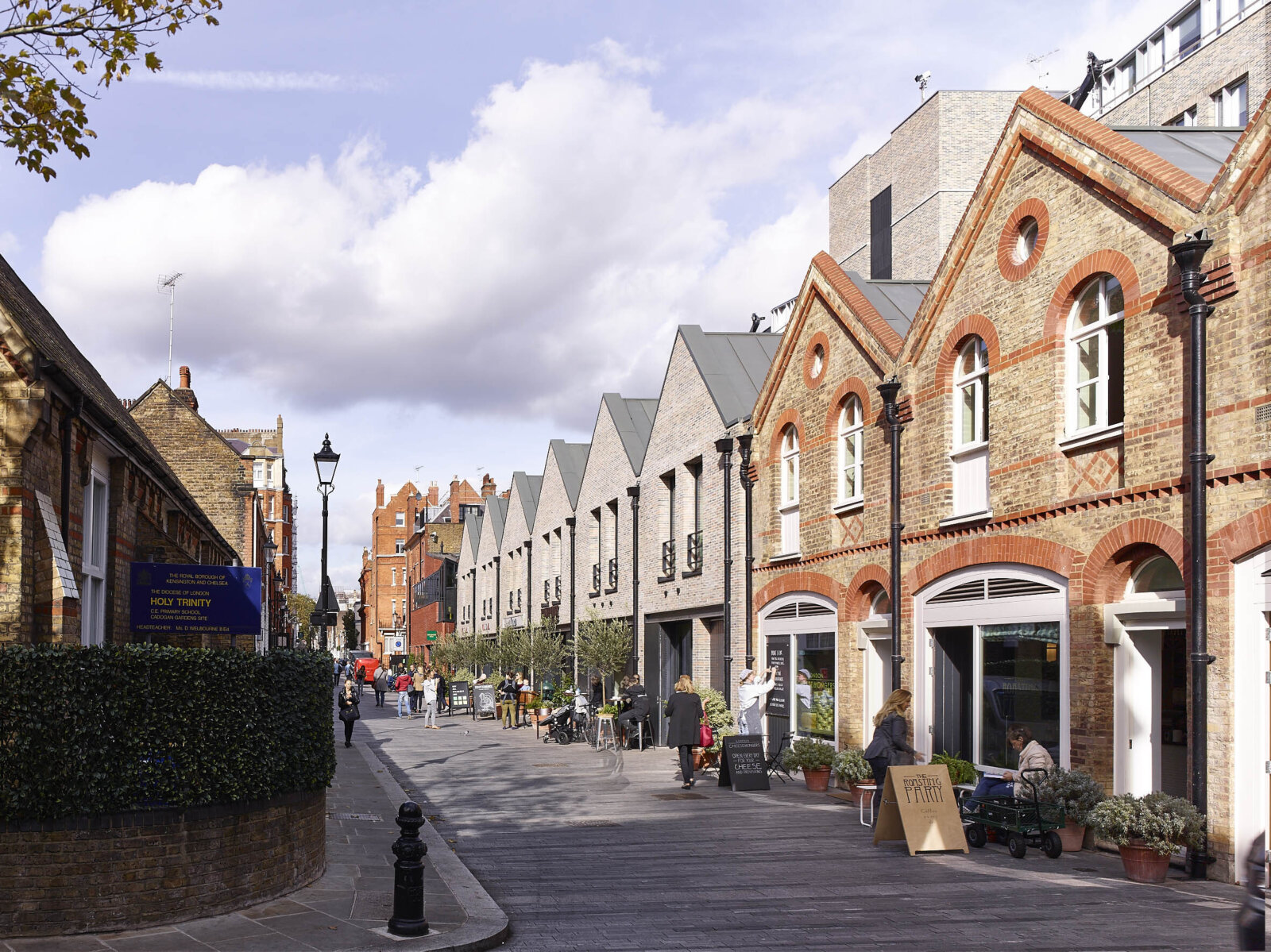 Behind Sloane Street, a secret landscaped courtyard leads to a mews of artisanal shops and restaurants, transforming a former traffic rat-run into a lively, local and intimate street.