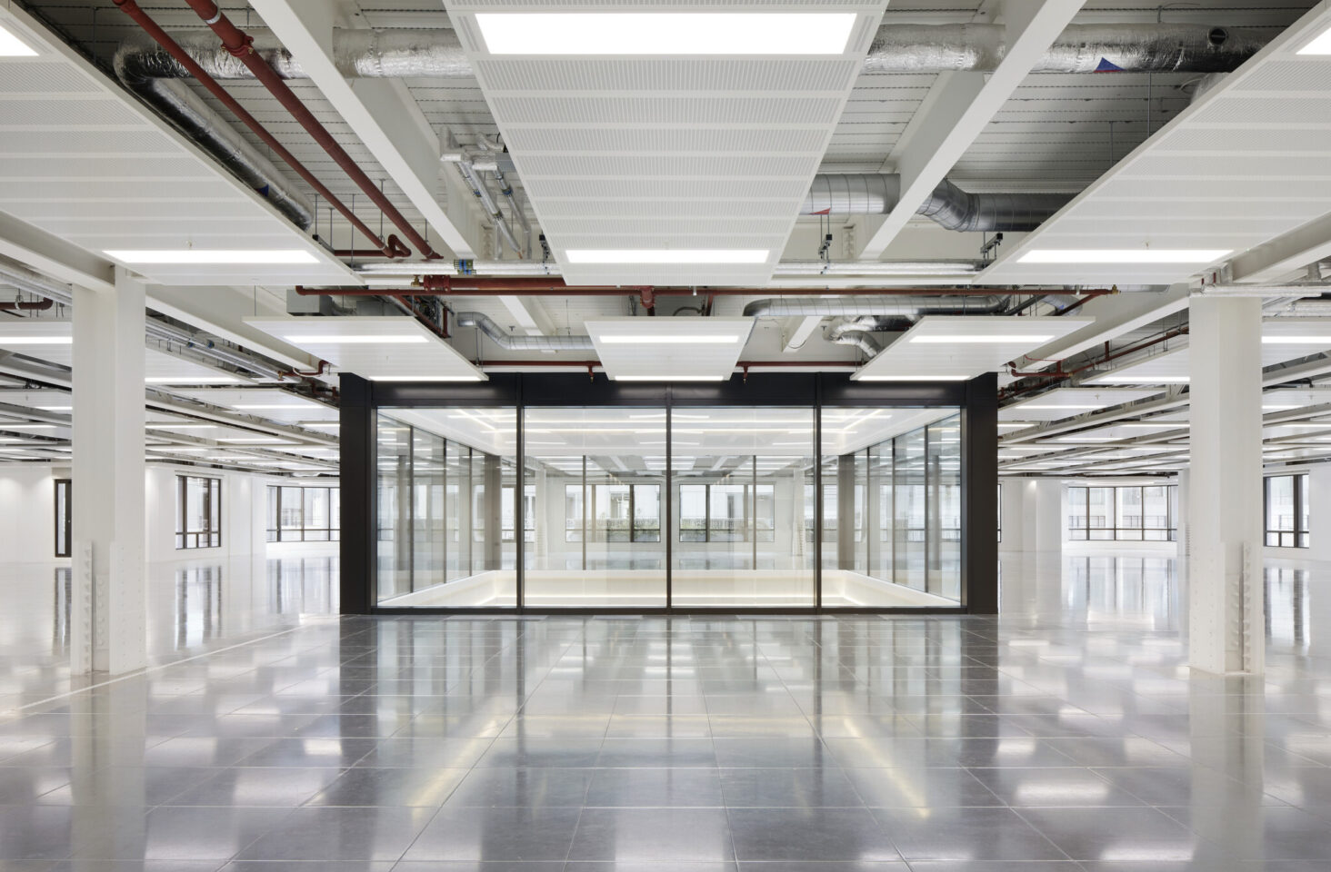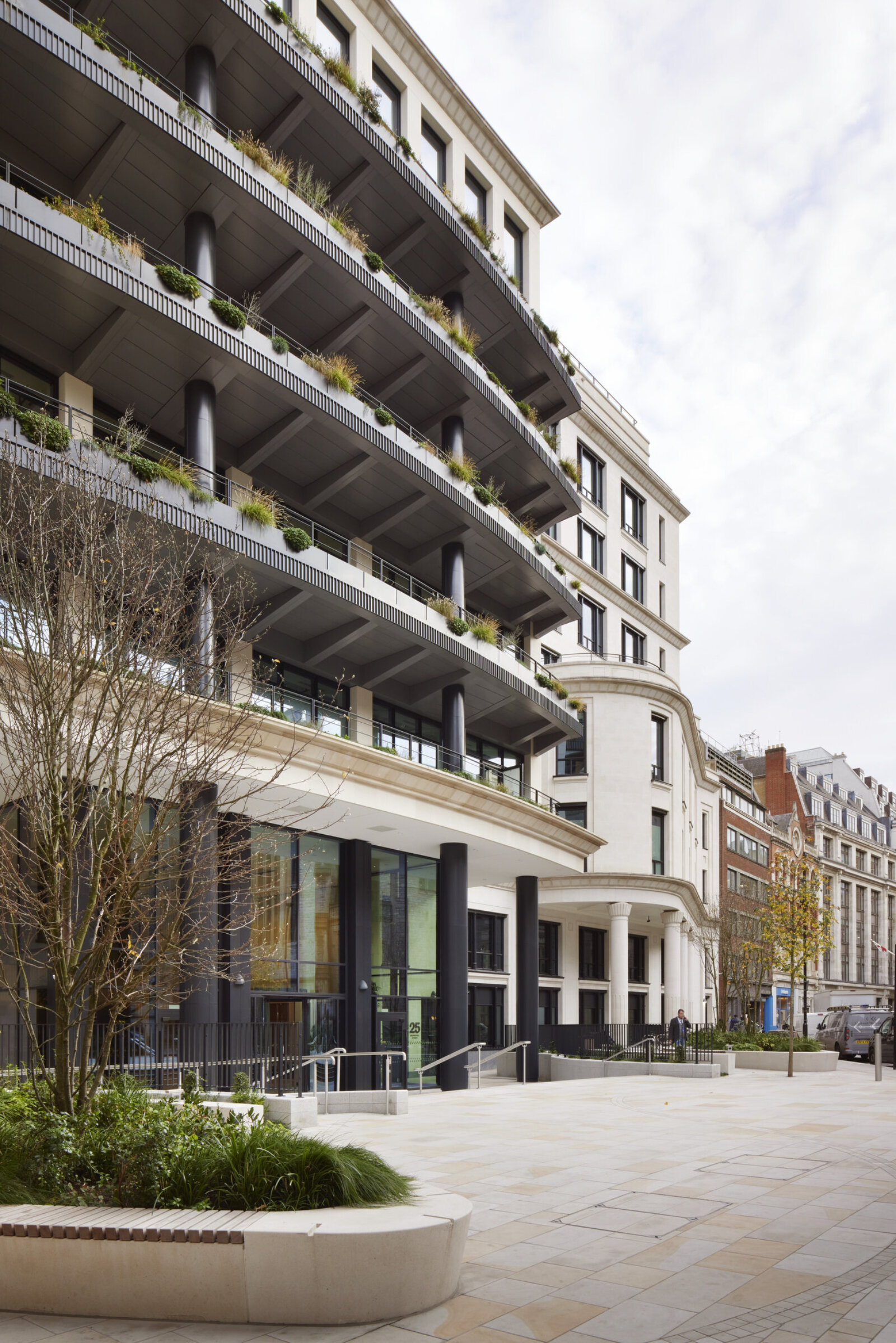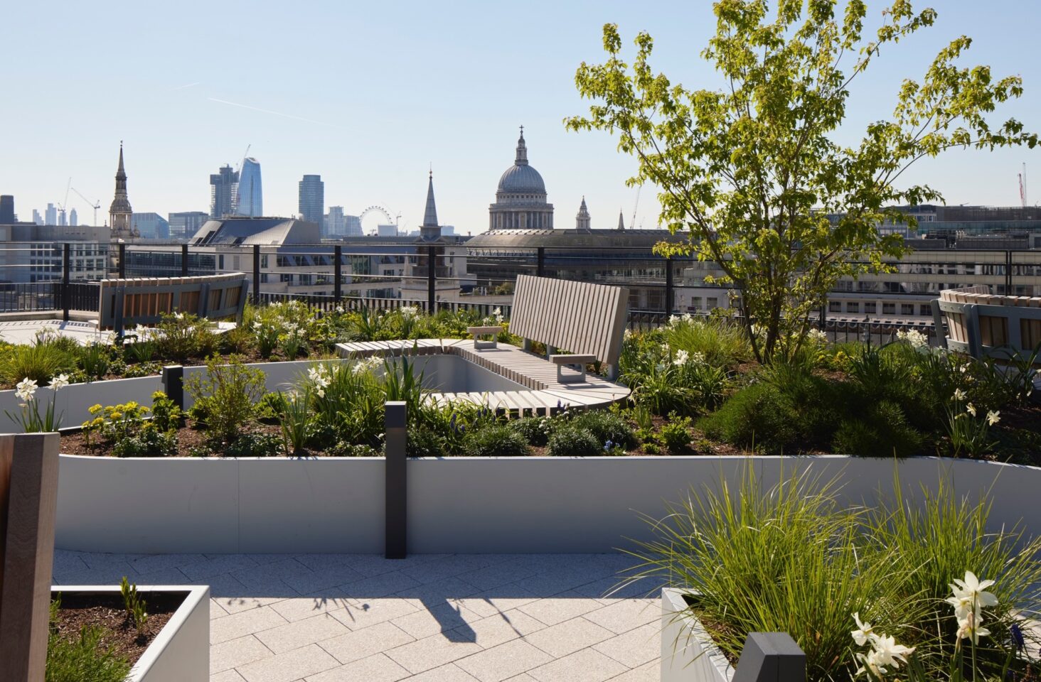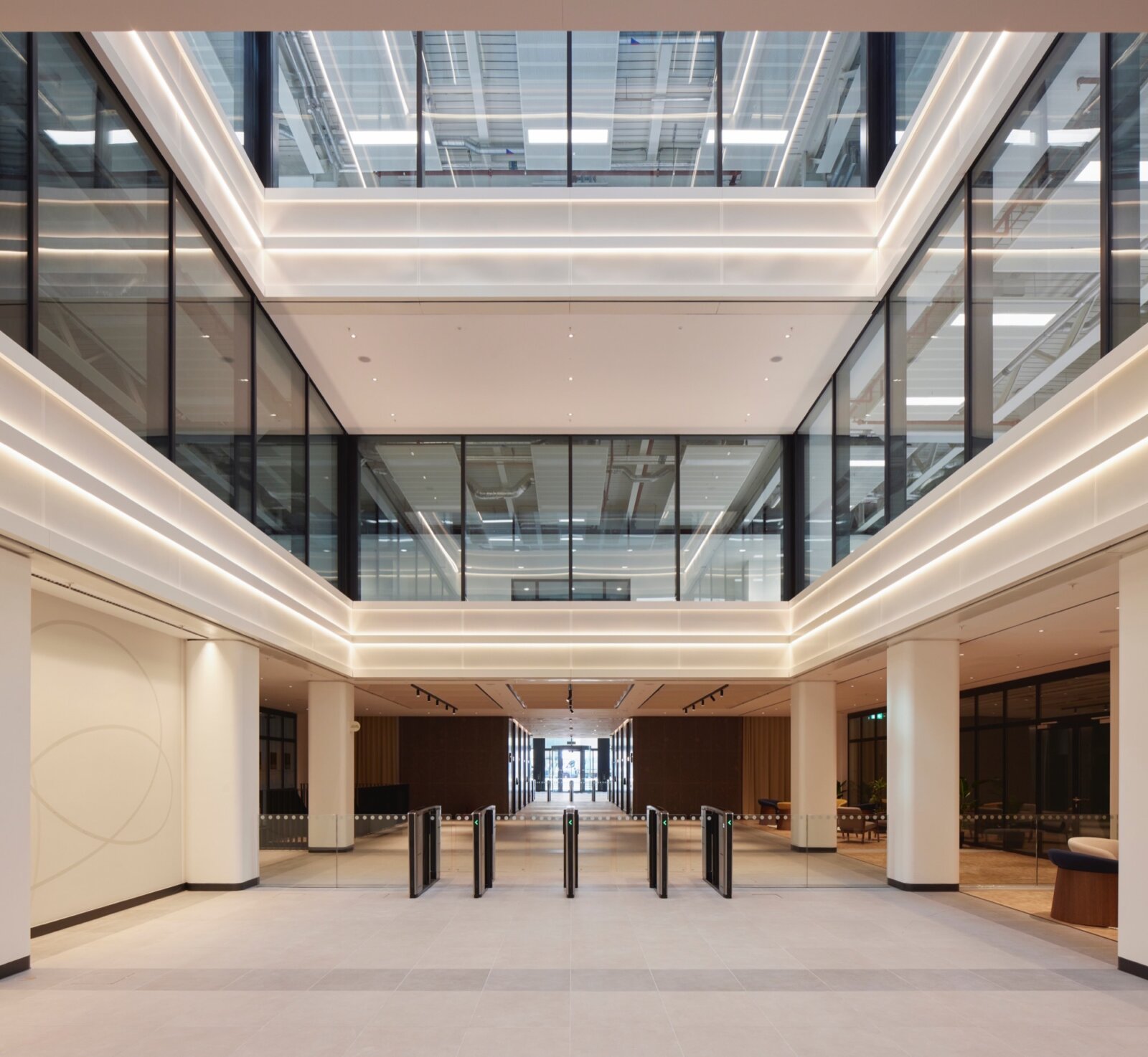 This nine-storey building, one of the largest refurbishment schemes in London at the time, has been reimagined to meet the needs of modern occupiers. This includes 345,000 sq ft of net internal area and a new 1,500 sq ft rooftop pavilion boasting unique views of St Paul’s Cathedral and the City tower cluster. The renovated building features over 20,000 sq ft of external terraces, providing urban greening, biodiversity, and generous outdoor space on the majority of upper floors. The reception area leading onto Basinghall Street was enlarged and a new entrance was created on Coleman Street, complemented by a ‘pocket park’ and new retail amenity. The development is an exemplar for retrofit in the City, net zero carbon in both construction and operation thanks to an ambitious reuse and retention strategy, which sought to preserve 98% of the existing structure. The building is all-electric, with no fossil fuel or gas boilers on site, and 100% green power purchase agreements (PPA) are in place.